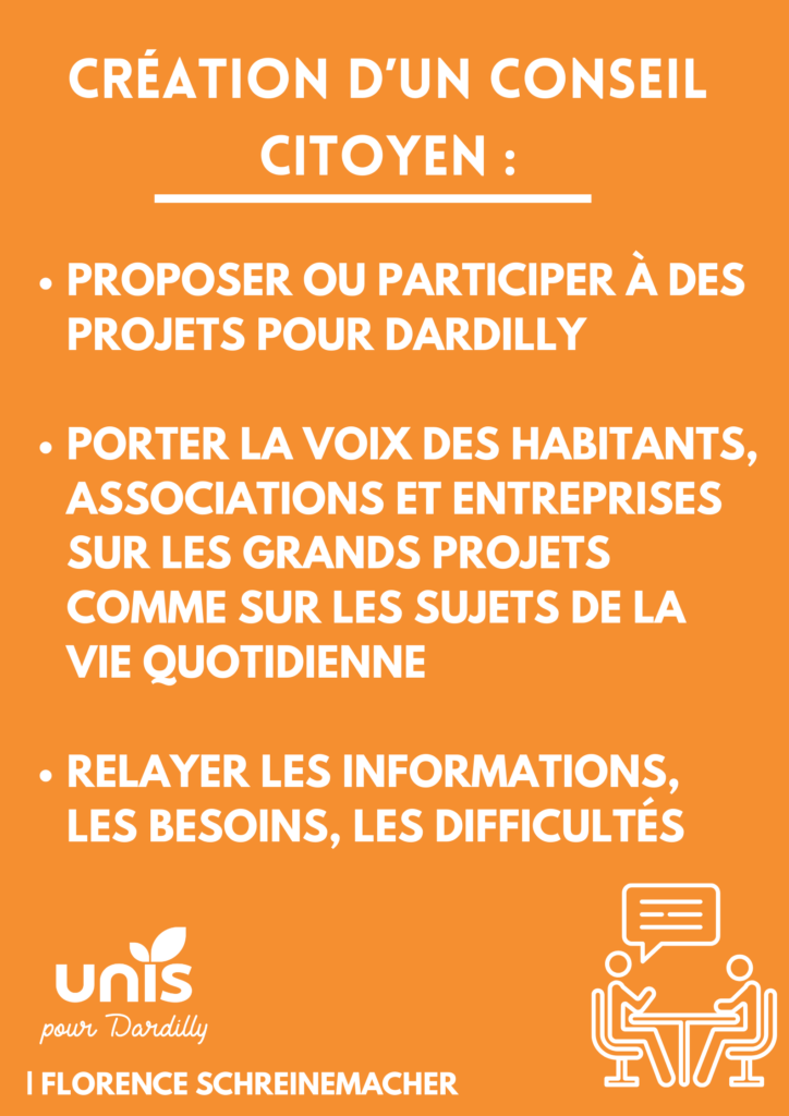 Chaque jour retrouvez une proposition pour Dardilly. On débute par la création d’un comité citoyen représentatifs de tous les quartiers et des Dardillois. Et la poursuite des actions en faveur de la participation des habitants.